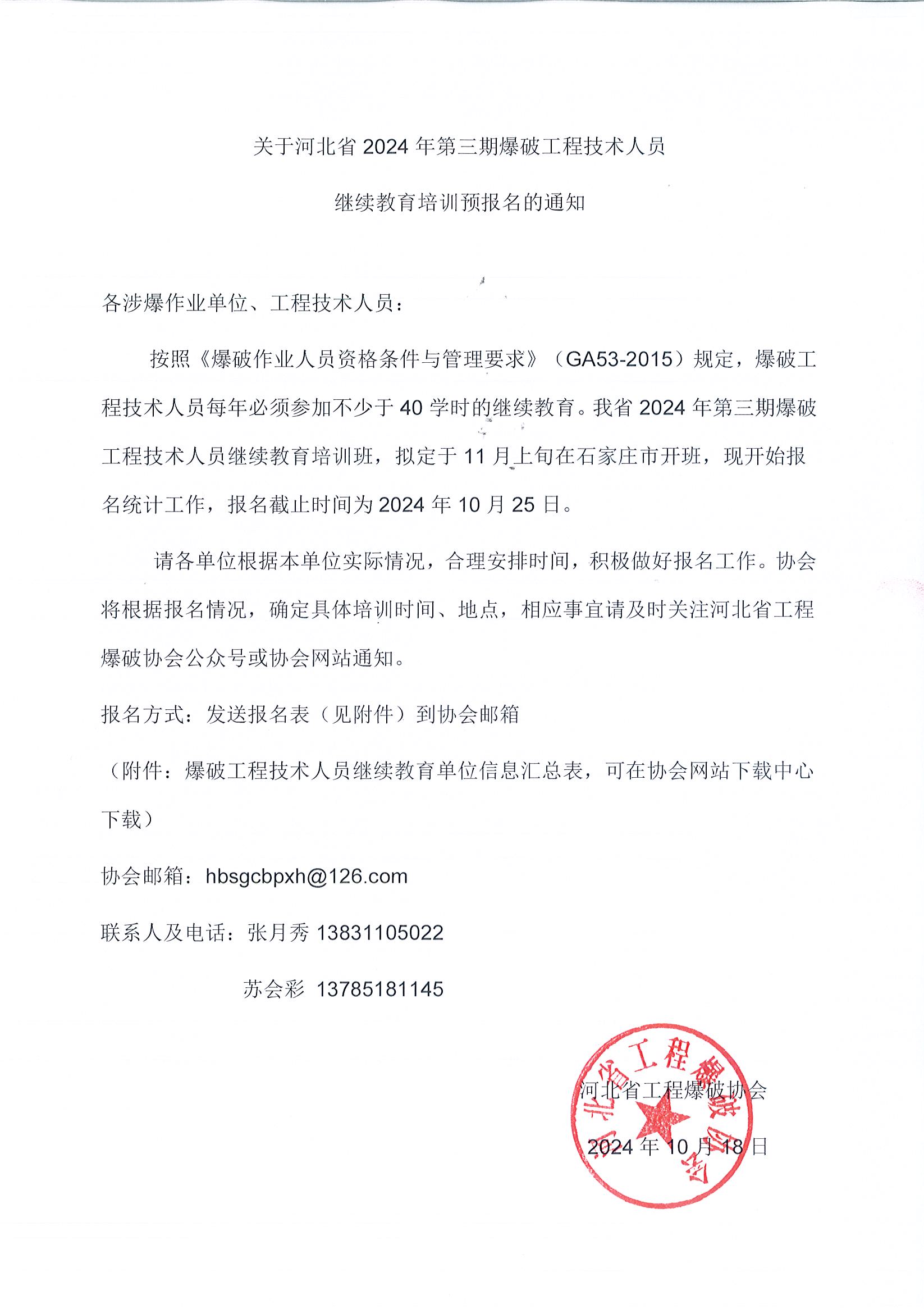 上一篇: 关于举办2024年度河北省爆破工程技术人员继续教育培训班(第二期)的通知